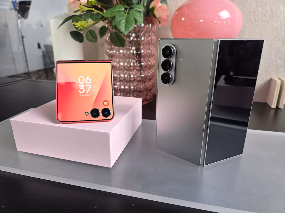 Como se sabe, el Flip es el modelo que se cierra al medio en formato vertical como los viejos equipos “con tapita”, pero son todo pantalla en su interior y la parte exterior también es un potente y muy práctico display. El Fold, por su parte, se cierra como un libro, dando como resultado un equipo con el aspecto exterior de un teléfono convencional, pero que al abrirlo despliega una pantalla del doble de tamaño, ideal para juegos y contenido multimedia.