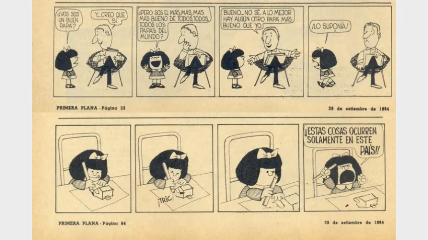 El 29 de septiembre de 1964, Quino presentó a Mafalda en la revista Primera Plana. La historieta continuó en medios como el diario El Mundo y el semanario Siete Días Ilustrados, hasta la publicación de su última tira el 25 de junio de 1973.